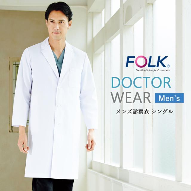 ドクターコート 白衣 メンズ 医療用 医者 看護 FOLK 男性用 長袖 メンズ診察衣シングル【送料無料】医師 診察衣 病院 クリニック 薬局 歯科 薬剤師 回診 研修 制服 ユニフォーム agesugi_snk