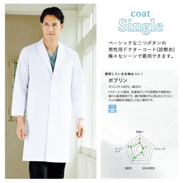 ベーシックな三つポタンの男性用ドクターコート。