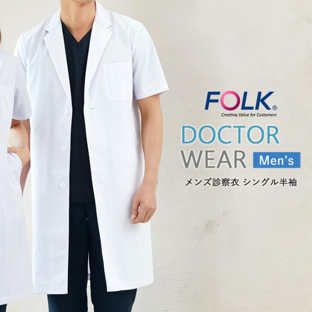 ドクターコート 白衣 メンズ 医療用 医者 看護 FOLK 男性用 半袖 メンズ診察衣シングル半袖【送料無料】医師 診察衣 病院 クリニック 薬局 歯科 薬剤師 回診 研修 制服 ユニフォーム agesugi_snk