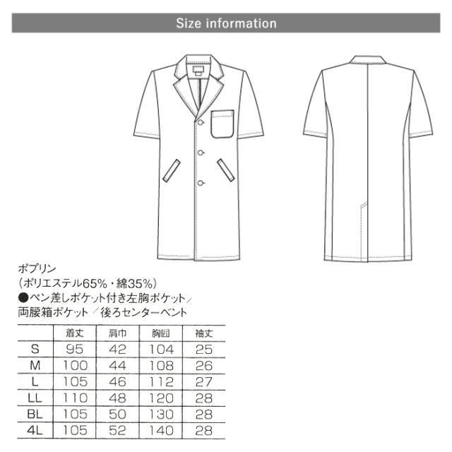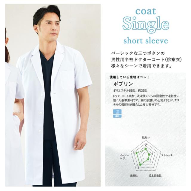 ベーシックな三つポタンの男性用半袖ドクターコート。