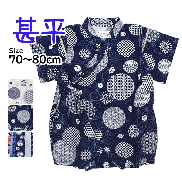 | 甚平 ロンパース 赤ちゃん ベビー 男の子 綿100% 日本製生地 カバーオール 甚平グレコ 部屋着 寝まき パジャマ 70cm |