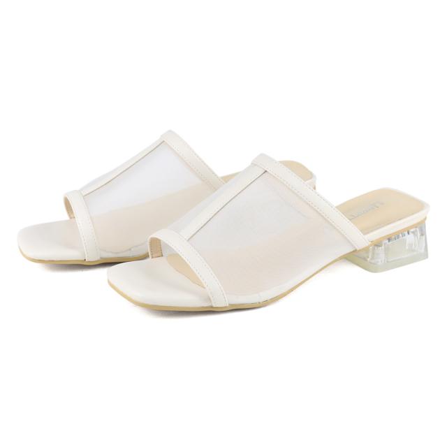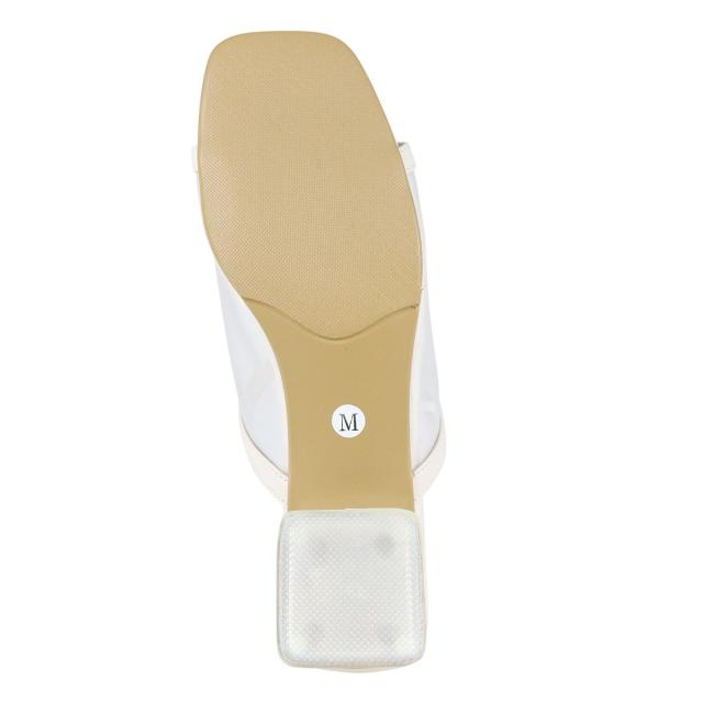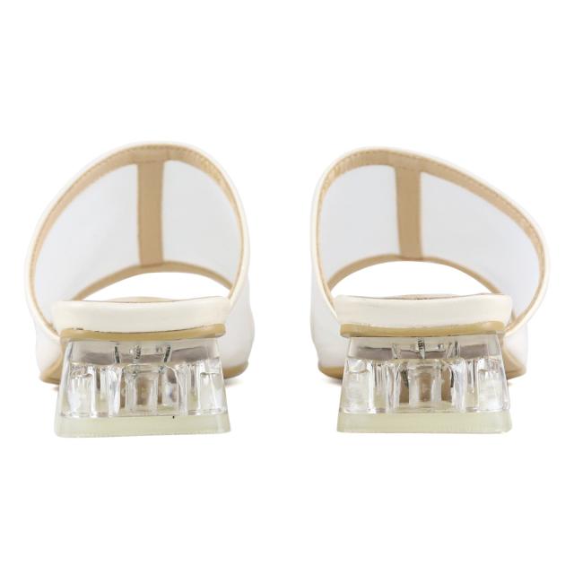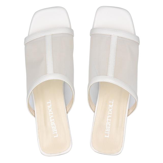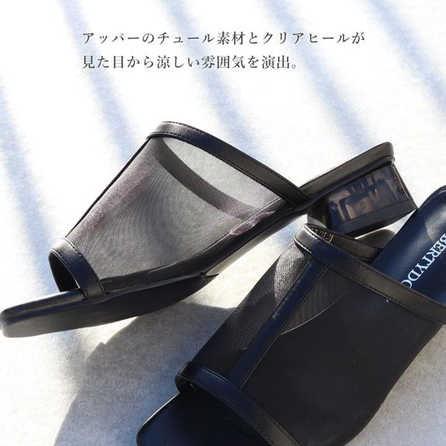 サンダル レディース チュール クリアヒール スクエアトゥ ミュール 3cmヒール No.4132 22cm〜25cm 黒 ブラック 白 リバティードール