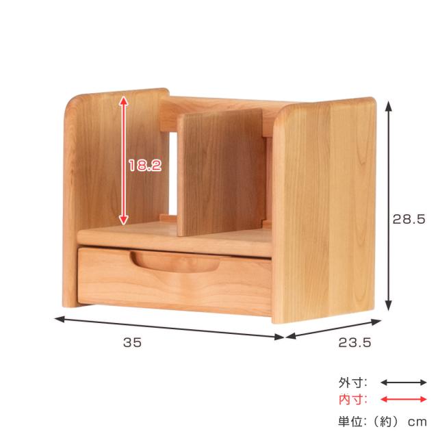 ブックスタンド 幅35cm 木製 天然木 子供用 キッズ ( 本たて デスク 収納 卓上 仕切り 小物収納 机上収納 引き出し コンパクト デスク周り 整理 シンプル 学習机 無垢 )