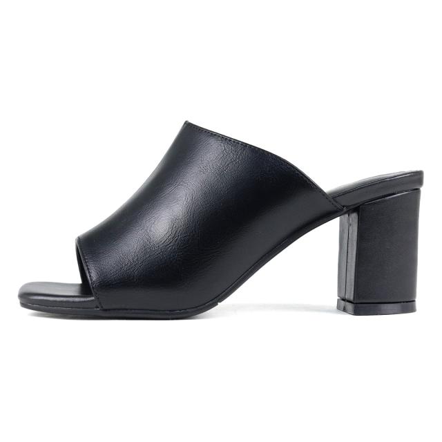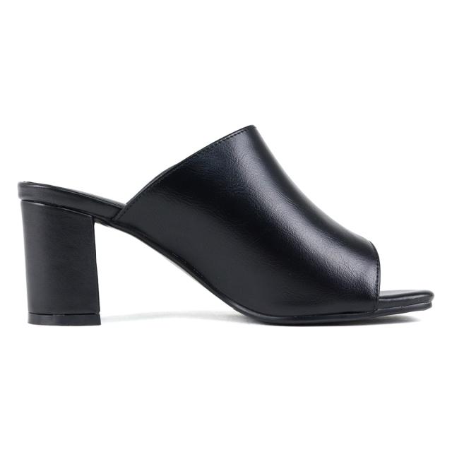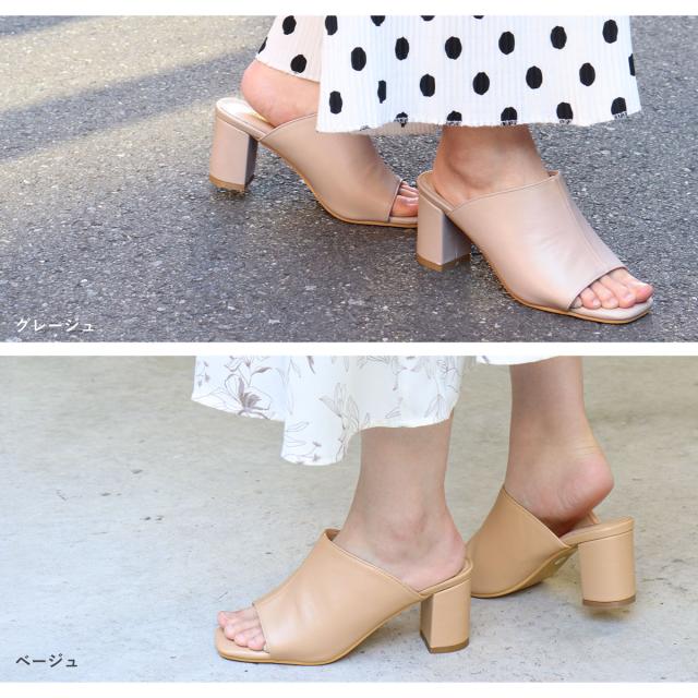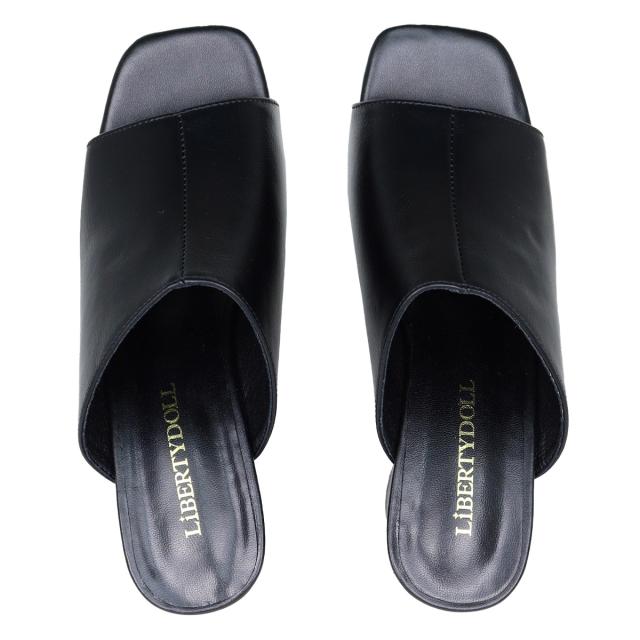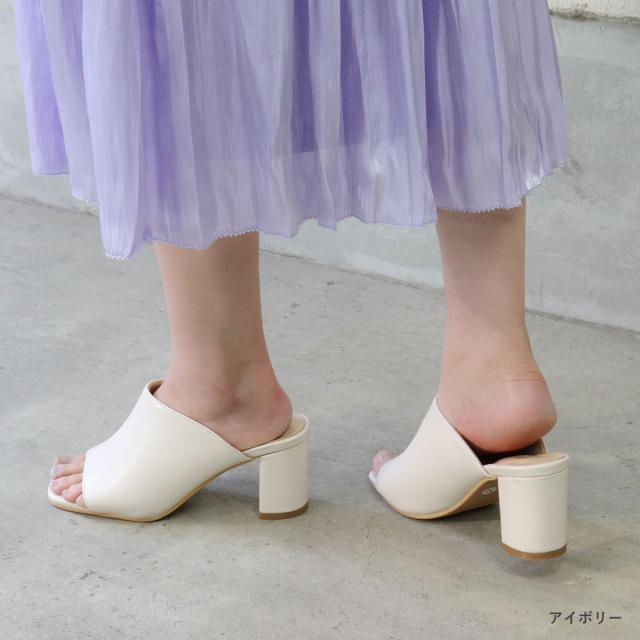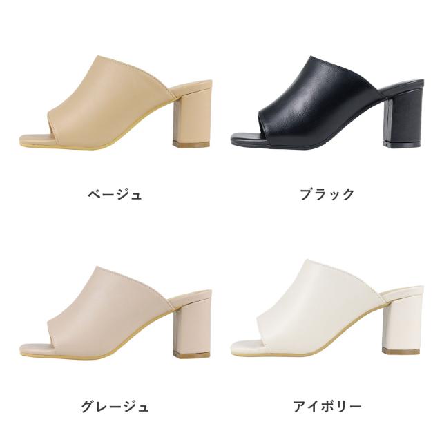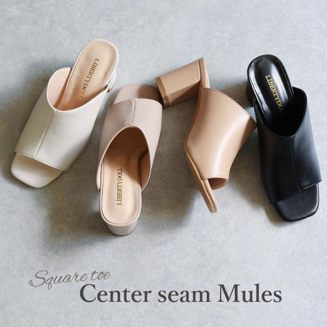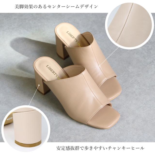 サンダル レディース スクエアトゥ センターシーム オープントゥ チャンキーヒール ミュール 6.5cmヒール No.4135 22.5cm〜24.5cm 黒 ブラック 白 アイボリー ベージュ LiBERTYDOLL リバティードール