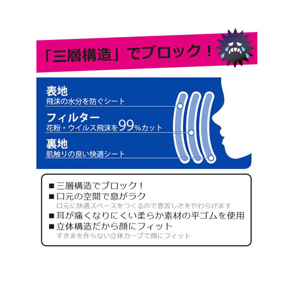 〇息苦しくなりにくい立体型で毎日快適です。