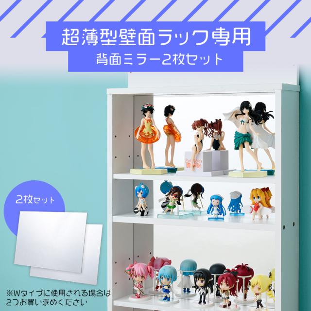 超薄型 コレクションラック専用 背面ミラー2枚セット (スリムタイプ・ワイドタイプ)木製 コレクションケース フィギュアケース 壁面収納 大型 薄型 シェルフ 縦長 横長 積み重ね ミニカープラレール トミカ 収納 スリム