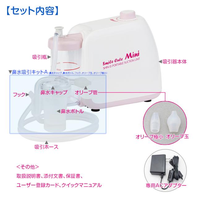 公式【オリーブロング2本付】日本製 電動鼻水吸引器 スマイルキュートミニ KS-100 新鋭工業 サイクロン方式 鼻水吸引キット付 鼻吸い器 鼻吸い機 出産祝い 子供 鼻水吸引 赤ちゃん 吸引力無料ラッピング無料 ギフト 出産祝