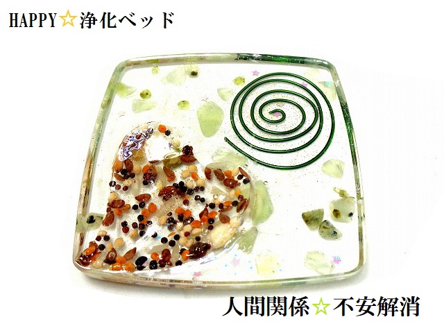 不安解消・人間関係向上☆プレナイト★ハッピーシード★風水★浄化★パワーストーン★ストーンプレート★ハッピー浄化ベッド☆HAPPY★オルゴナイト★護符(霊符)