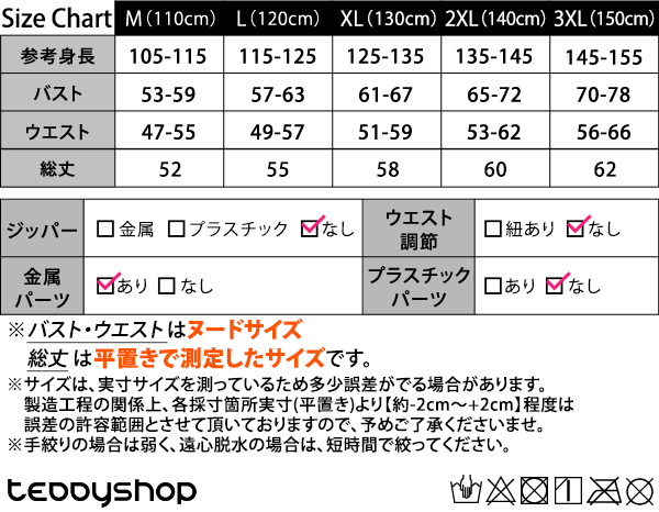 ●バスト・ウエストはヌードサイズ、総丈は平置きで測定したサイズです。