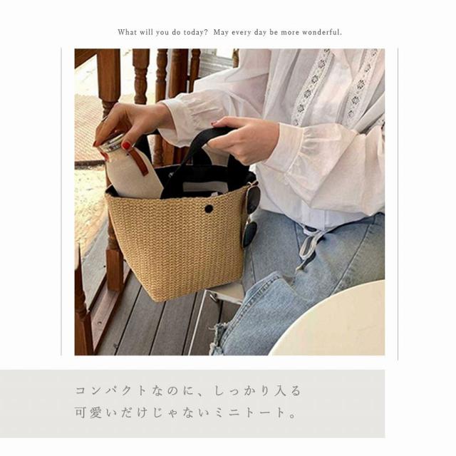 カゴバッグ レディース ピクニック バスケット風 ミニトートバッグ ブラック ホワイト ランチバッグ おしゃれ 人気 かわいい 韓国ファッション 春 夏 agesugi_sfa