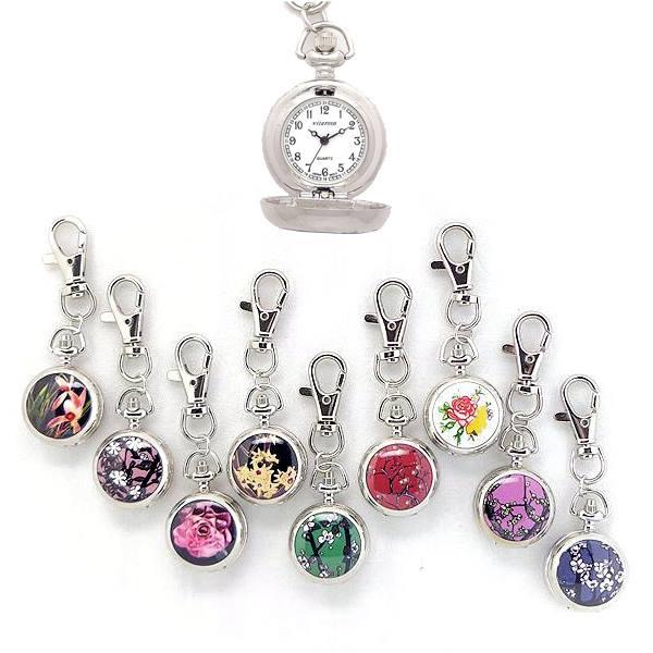 キーチェーン ウォッチ 花柄 蓋付 ハングウォッチ VR-CKC キーホルダー 開閉ふた付き かわいい 便利 時計 懐中時計 おしゃれ バッグチャーム レディス キーチェーン レディース キッズ メンズ
