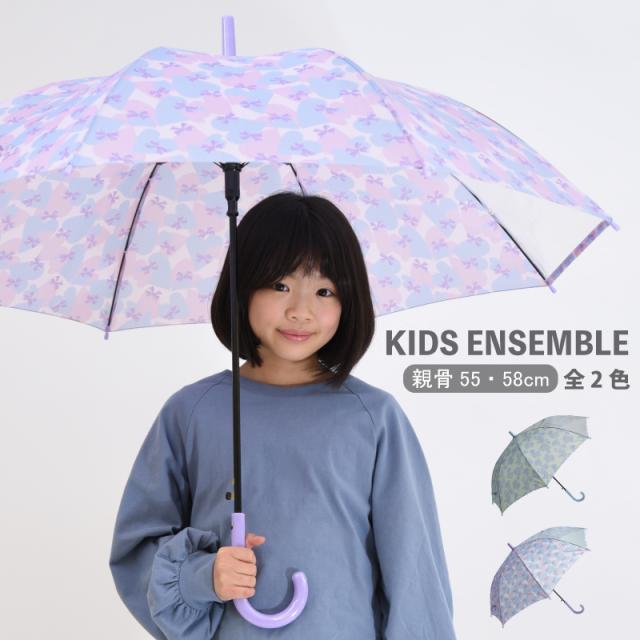傘 雨傘 長傘 子供 キッズ ハートリボン柄 女の子 可愛い かわいい おしゃれ アンサンブル リンクコーデ リンク おそろい お揃い グラスファイバー骨 通園 通学 入園 入学 送料無料 10002714