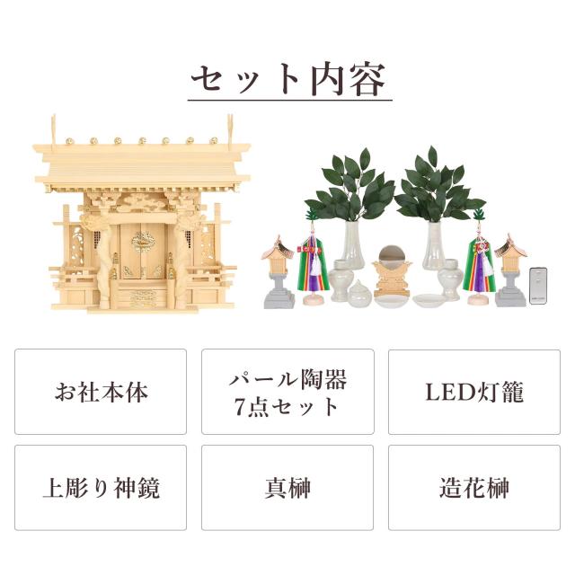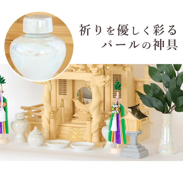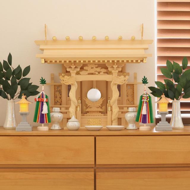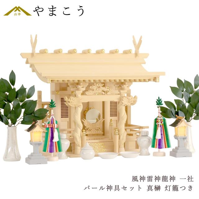 神棚セット 風神雷神龍神 宿る神々 真榊 パール神具セット LED灯篭 雄大 一社 檜葉製
