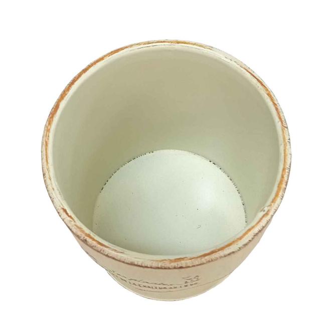 シンプルなデザインとアンティーク加工が施されたフラワーポットです。アイボリーとシルバーの上品な色味で植物を引き立たせてくれます。