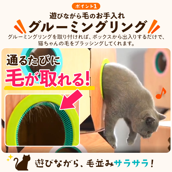 段ボールハウス 猫 ペット用 グルーミングリング付き ペットハウス 爪とぎ 段ボール付き ボックスハウス 遊びながら ブラッシング 隠れ家 キャットハウス 猫用 トリミング 通年 おもちゃ 玩具 キャットタワー かわいい 子猫 ネコ 四季通用 ねこ ペット用品 setpet01