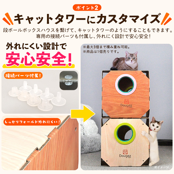 ※段ボールボックスハウスは最大3個まで積み重ねることが可能です。重ねる場合は接続パーツを使用し、安全に配慮してご使用下さい。