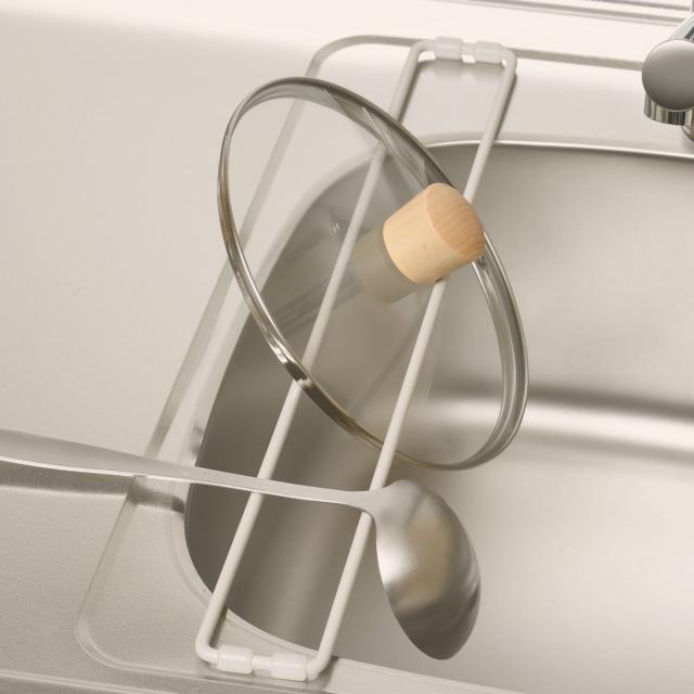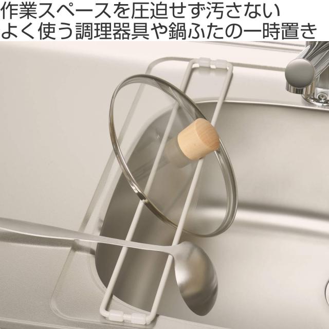 シンクに渡すことで、作業スペースを圧迫せずに蓋やキッチンツール、スポンジ、布巾などを置けます。シンクに直接水滴が落ちるので、作業スペースを汚さずに一時置きができます。