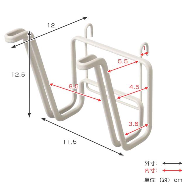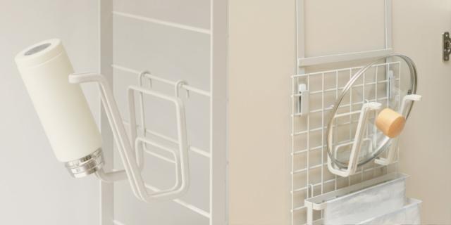 同シリーズ商品のシンク上水切りラック(左)と扉掛けマルチハンガー(右)と組み合わせて使えます。また、角度がついているので取り出しやすいです。