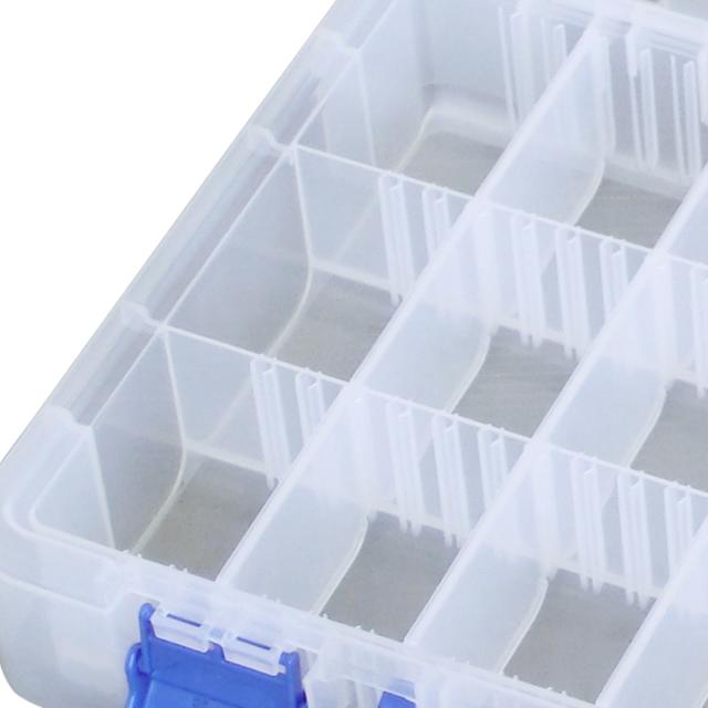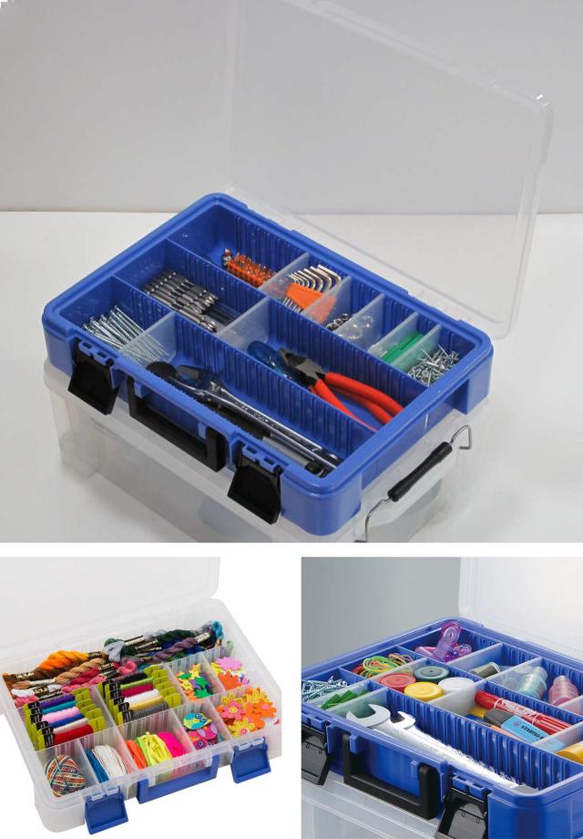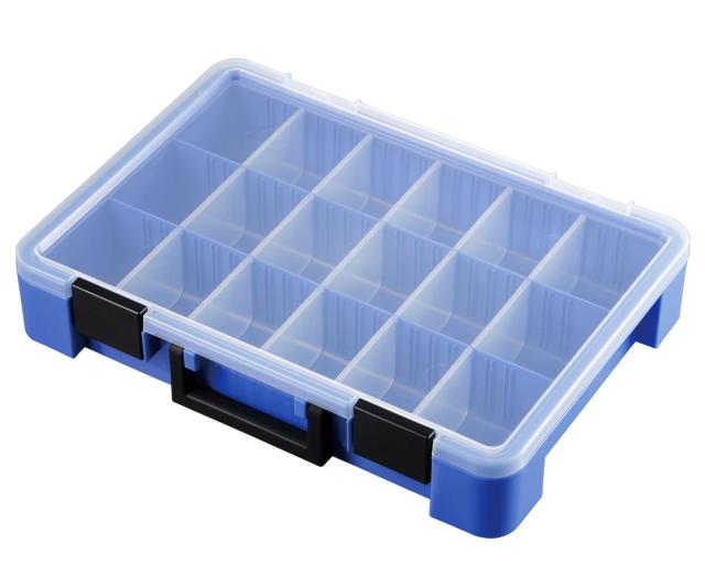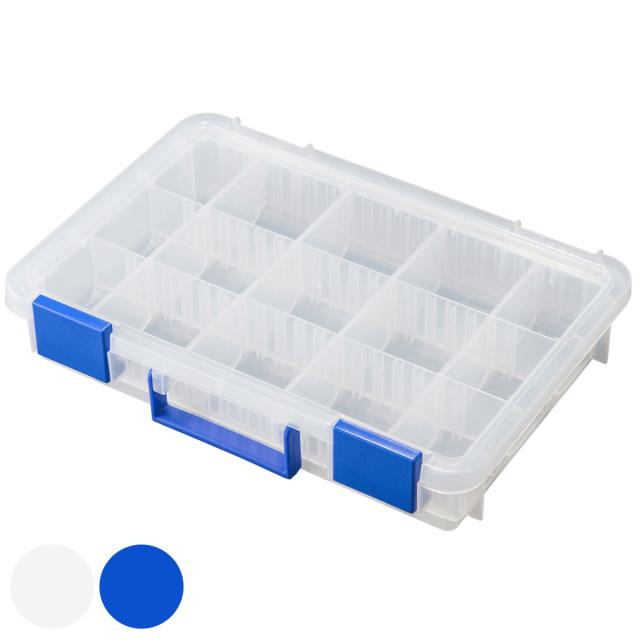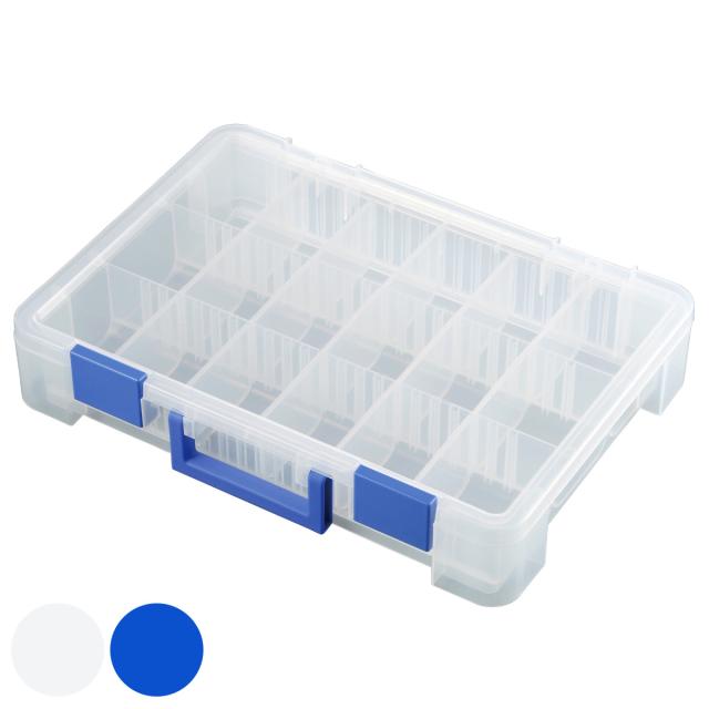 小物や部品をスッキリ整理して収納できるパーツケースです。ネジなどの細かいアイテムから文房具など長さや大きさがあるものも仕切りを使って収納可能です。フタがクリアで、一目でどこに何が収納されているかわかるので、探しやすく取り出しやすいです。工具やDIY用品、カー用品、釣り具、手芸パーツ、アクセサリーパーツ収納など幅広い小物収納に役立ちます。