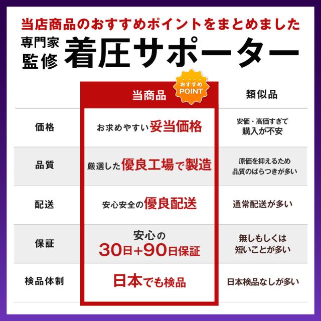 - 車の運転を長時間するとふくらはぎがだるくなってしまうので今回このサポーターを購入しました。サポーターを外した時、気持ちがいいです。ふくらはぎのだるさも軽減しました。