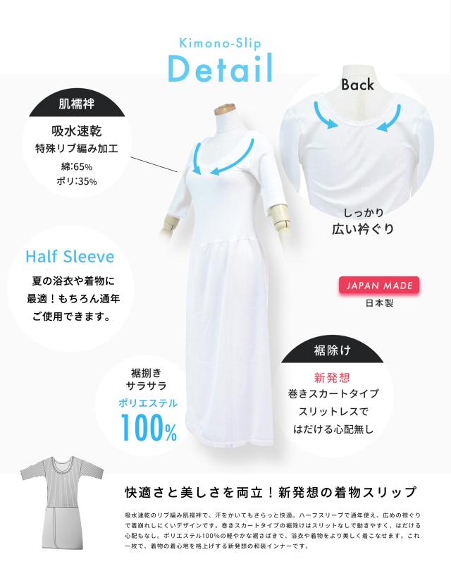 着物スリップ 肌襦袢 ワンピース 和装下着 和装肌着 ホワイト ベージュ ピンク 選べる3色 インナー ゆかたスリップ 下着 スリップ きもの ゆかた 和装小物 和装スリップ 着付 ゆかた下 夏 単衣 袷 浴衣 着物 日本製