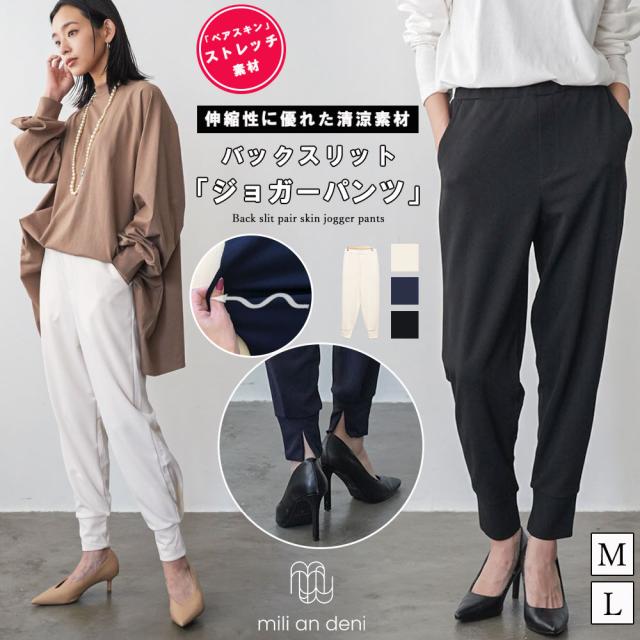 春新作 ペアスキン バックスリット ジョガーパンツ ストレッチ パンツ ボトム M L レディース ジョガー 春夏ミリアンデニ メール便(郵2) p73109