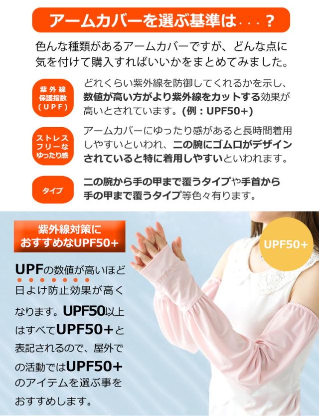 腕全体を紫外線からしっかりガードする幅広タイプのアームカバーです