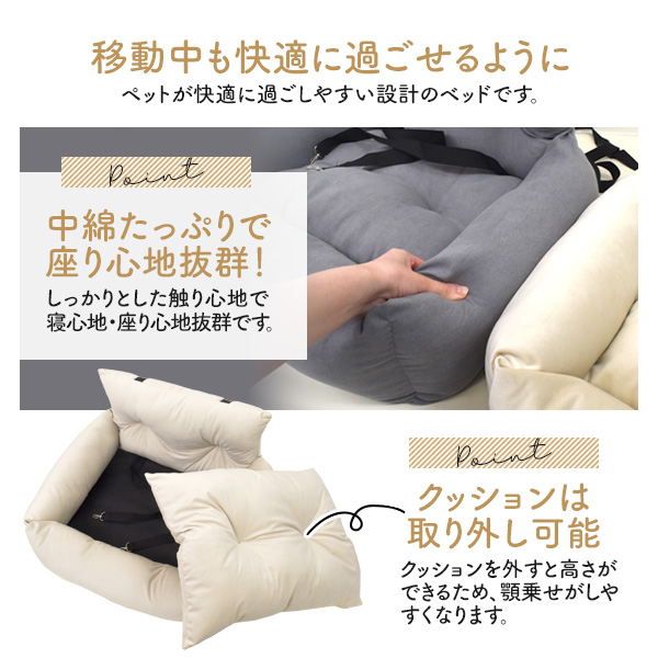 飛び出し防止フック2本付き!車でも自宅でも使えるペット用ドライブベッド