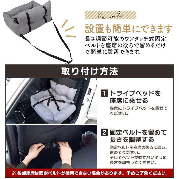 ※車内ではドライブベッドを必ず座席に固定して使用してください。