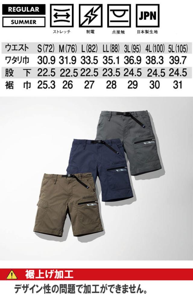 作業服 作業着 TORAICHI 寅壱 トライチ 春夏 カーゴハーフパンツ 9531-241 サイズS〜LL 制電 ストレッチ