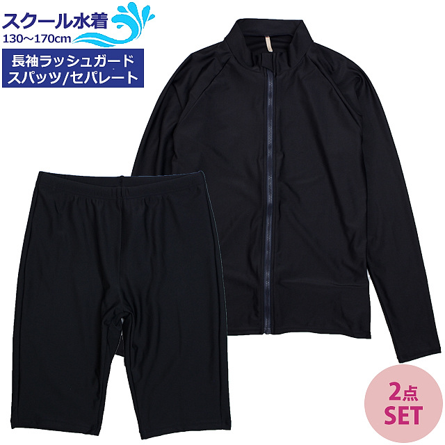 スクール水着 女子 女の子 セパレート ラッシュガード 長袖 パンツ 上下 小学生 学校 水着 子供 濃紺 130cm 140cm 150cm 160cm 170cm 送料無料