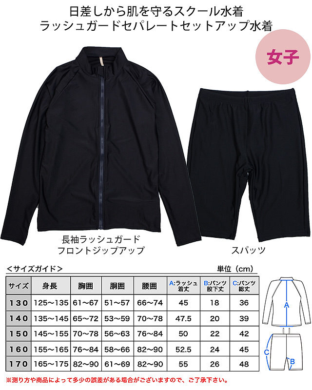 | スクール水着 女子 女の子 セパレート ラッシュガード 長袖 パンツ 上下 小学生 学校 水着 子供 濃紺 130cm 140cm 150cm 160cm 170cm 送料無料 |