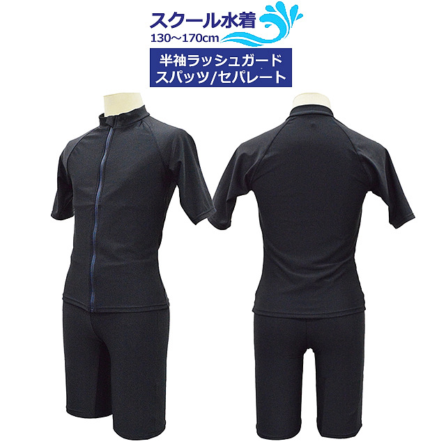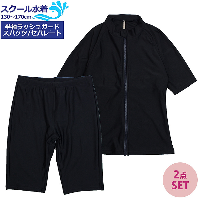 スクール水着 女子 女の子 セパレート ラッシュガード 半袖 パンツ 上下 小学生 学校 水着 子供 濃紺 130cm 140cm 150cm 160cm 170cm 送料無料