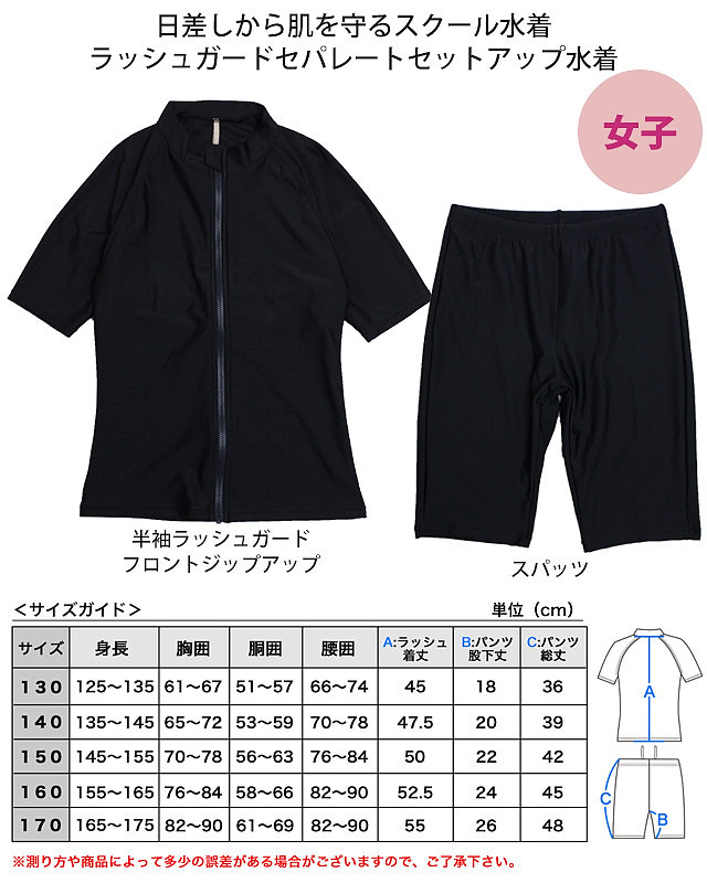 | スクール水着 女子 女の子 セパレート ラッシュガード 半袖 パンツ 上下 小学生 学校 水着 子供 濃紺 130cm 140cm 150cm 160cm 170cm 送料無料 |