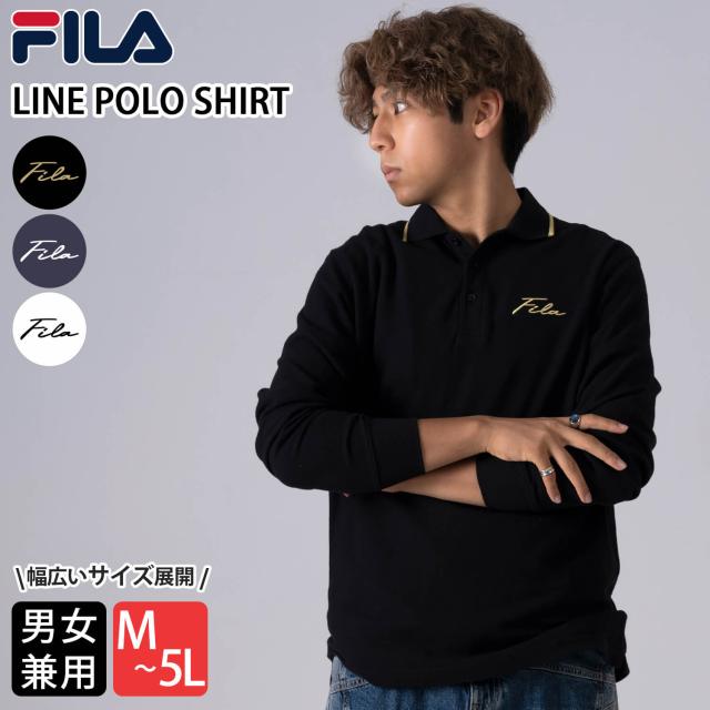 FILA 襟ライン 長袖ポロシャツ ユニセックス コットン