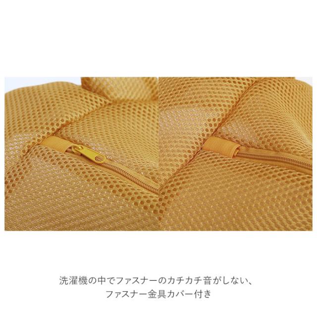 | 注意点 | ※内容物の洗濯表示に基づいて使用してください。 ※ネット容量の2/3を目安として、洗濯ものを入れてご使用ください。 ※本品は糸くずなどの侵入を防ぐことは出来ません。 ※洗濯の際は、ファスナーを最後まで閉め、引手を引手カバー内に収納してご使用ください。 ※本来の用途以外のご使用はお避け下さい。 ※洗濯機の取扱説明書をご確認の上、ご使用ください。 ※乾燥機には絶対に使用しないでください。特に乾燥機と一体型の洗濯機にはご注意ください。 ※塩素系漂白剤のご使用はお避けください。 ※本体の一部を引っ張ったり振り回すなど、商品に強い力を加えると破損の原因となりますのでご注意ください。 ※布製品の特性上時間の経過による経年劣化は避けられません。 ※ご使用状況により、摩擦などで色落ち・色移りする場合がありますのでご注意ください。 ※火気や高温となる場所を避け、陰干ししてください。 ※ご使用前に本体を洗ってからお使いください。 ※ネット破損の原因になりますのでネット容量以上に衣類を詰め込んだり、先の尖った金属がついた衣類などは入れないでください。 ※お子様の手の届かない場所に保管してください。 ※カメラやモニターの性質により、画像と実物の色の違いがある場合がございますのでご理解願います。 |