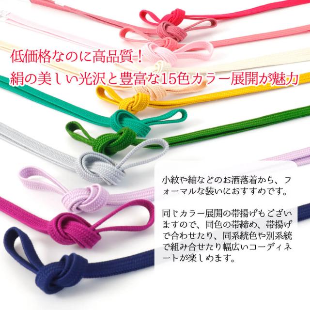 同じカラー展開の帯揚げもございますので、同色の帯締め、帯揚げで