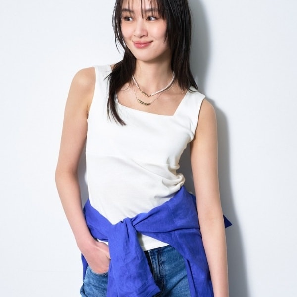 バックシャンなどのデザイントップスの下に着てもマッチしやすいです。