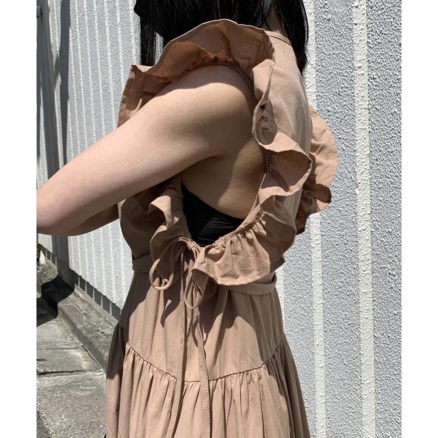 前は深めのカシュクールですっきりとした印象が全体を引き締めてくれます。