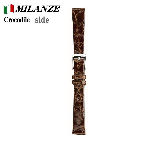 時計バンド 時計際幅 10mm 美錠幅 8mm クロコダイル 茶 イタリアンレザー ステンレス美錠 バネ棒2本 簡易交換工具付き ネコポス便対応品