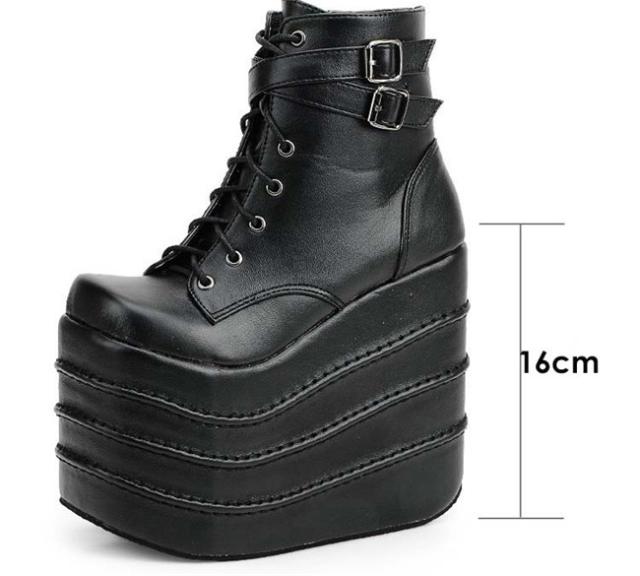 【送料無料】超厚底 ブーツ 靴 春秋 シンプル PU 超厚底 パンク風 ヴィンテージ ヒール16cm シューズ 小さいサイズ 大きいサイズ ストラップ ブラック 黒 コスプレ ゴシック 女の子 シューズ おしゃれ 日常可