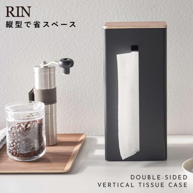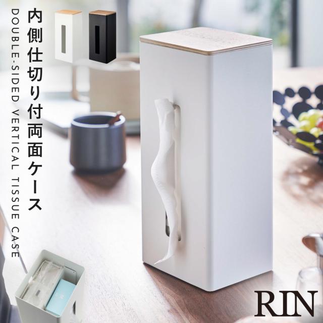 ティッシュケース 縦置き 縦型 収納 両面 仕切り RIN リン ホワイト ブラック 両面ティッシュケース縦型 リン