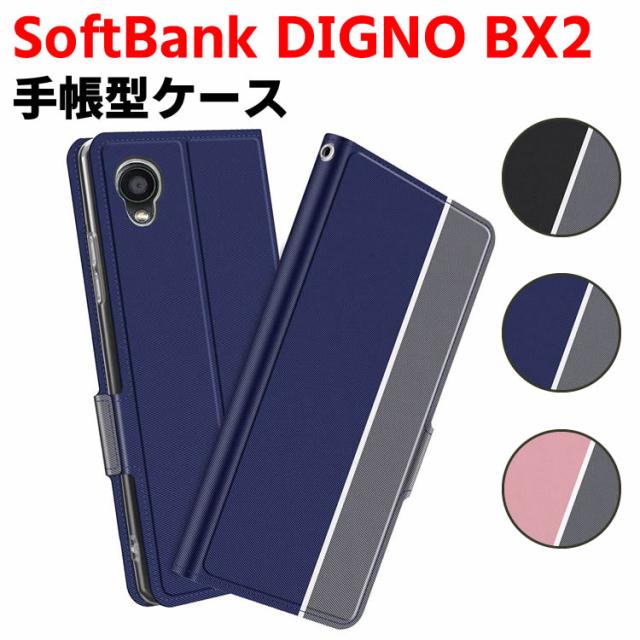 SoftBank DIGNO BX2 ケース 京セラ 手帳型ケース スマートフォンケース カバー マグネット ツートーンカラー ストラップ付き 定期入れ ポケット シンプル スマホケース スタンド機能 二つ折りケース スマホ用ケース スマートフォン用ケース