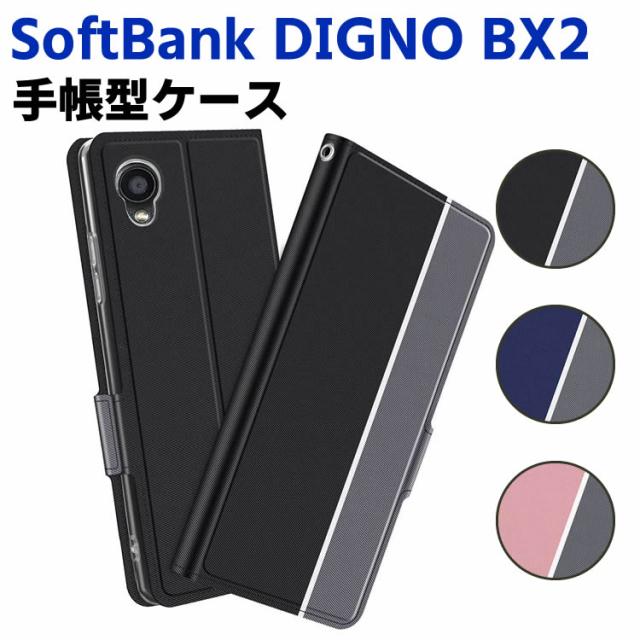 SoftBank DIGNO BX2 ケース 京セラ 手帳型ケース スマートフォンケース カバー マグネット ツートーンカラー ストラップ付き 定期入れ ポケット シンプル スマホケース スタンド機能 二つ折りケース スマホ用ケース スマートフォン用ケース