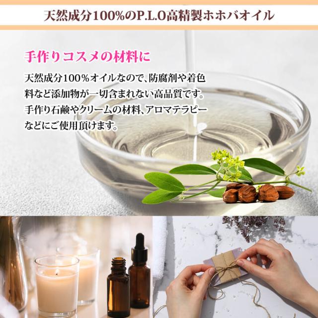 ・季節やロットによって香りの強弱がある場合があります。ホホバ特有の香りの為、劣化臭ではないかとご心配される方がおられますが、品質には全く問題ございません。安心してご使用ください。