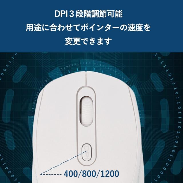 ホイールボタンの後ろ側に、マウスポインタ速度を3段階に変更できるDPIボタン付き。