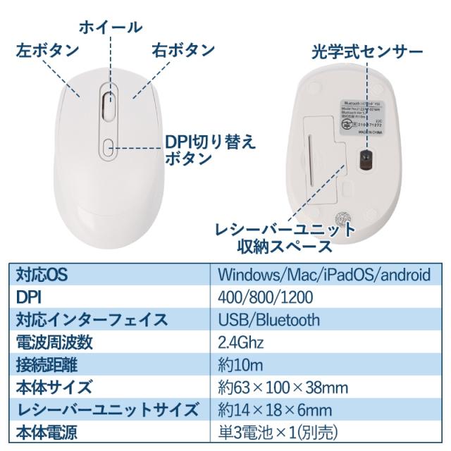 マウス ワイヤレス Bluetooth ワイヤレスマウス ハイブリッドマウス 無線 無線マウス USB Bluetooth5.0 Windows mac