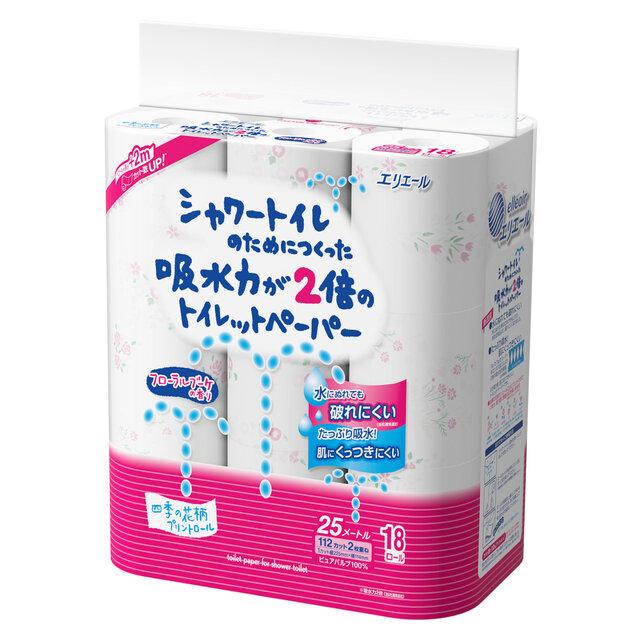 エリエール シャワートイレのためにつくった吸水力が2倍のトイレットペーパー 18ロール ダブル 大王製紙