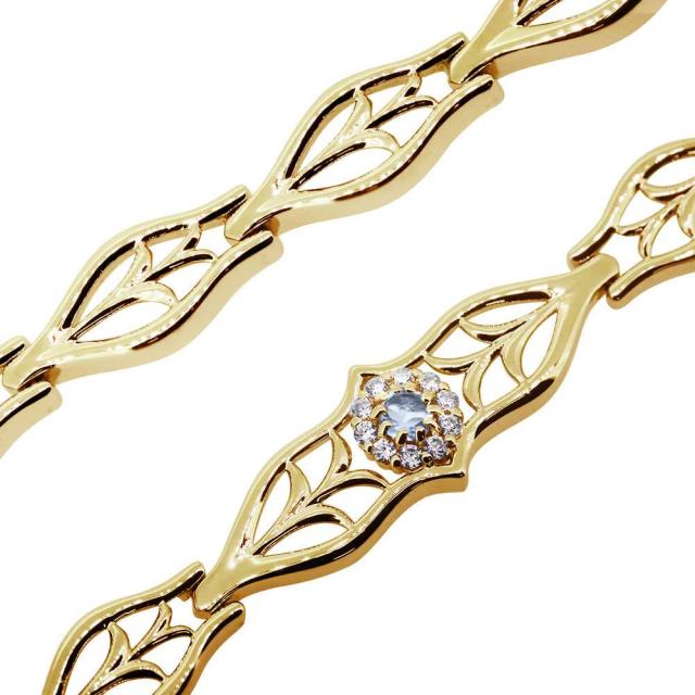 ブレスレット メンズ 10金 10k イエローゴールド 誕生石 3月 アクアマリンサンタマリア 男性 人気