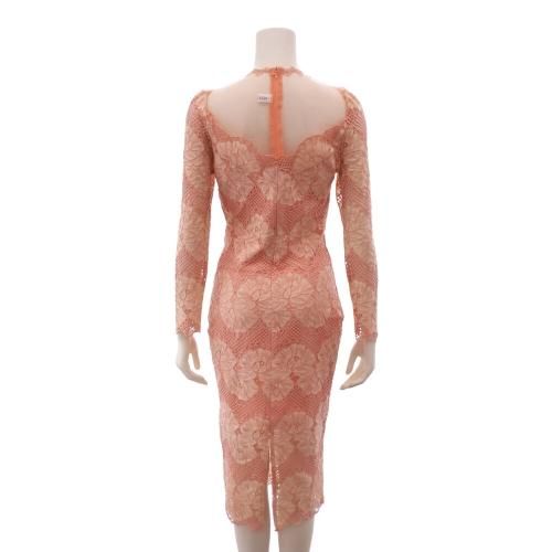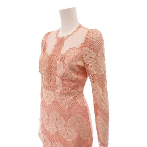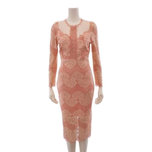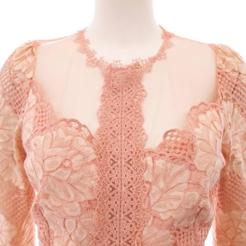 【グラシア】 キャバ ドレス キャバドレス ワンピース ミディアムドレス タイト チュール デコルテ フェミニン 華奢 刺繍 高級感 大人 レース シアー サーモンピンク S M L XL